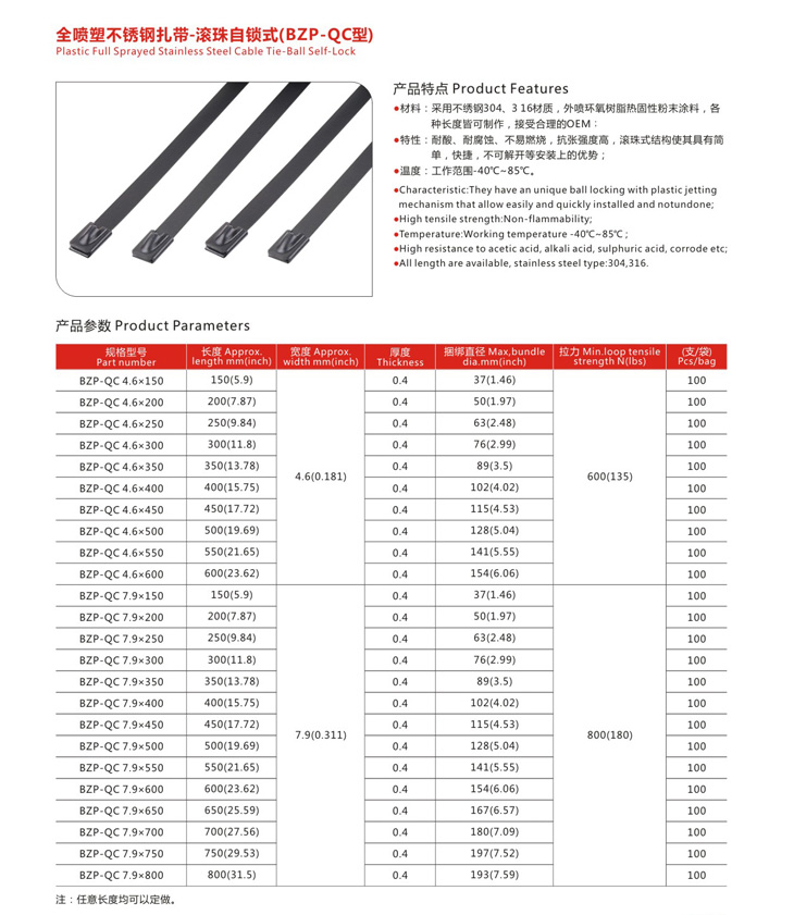 Plastic Full Sprayed Stainless Steel Cable Tie-Ball Self-Lock