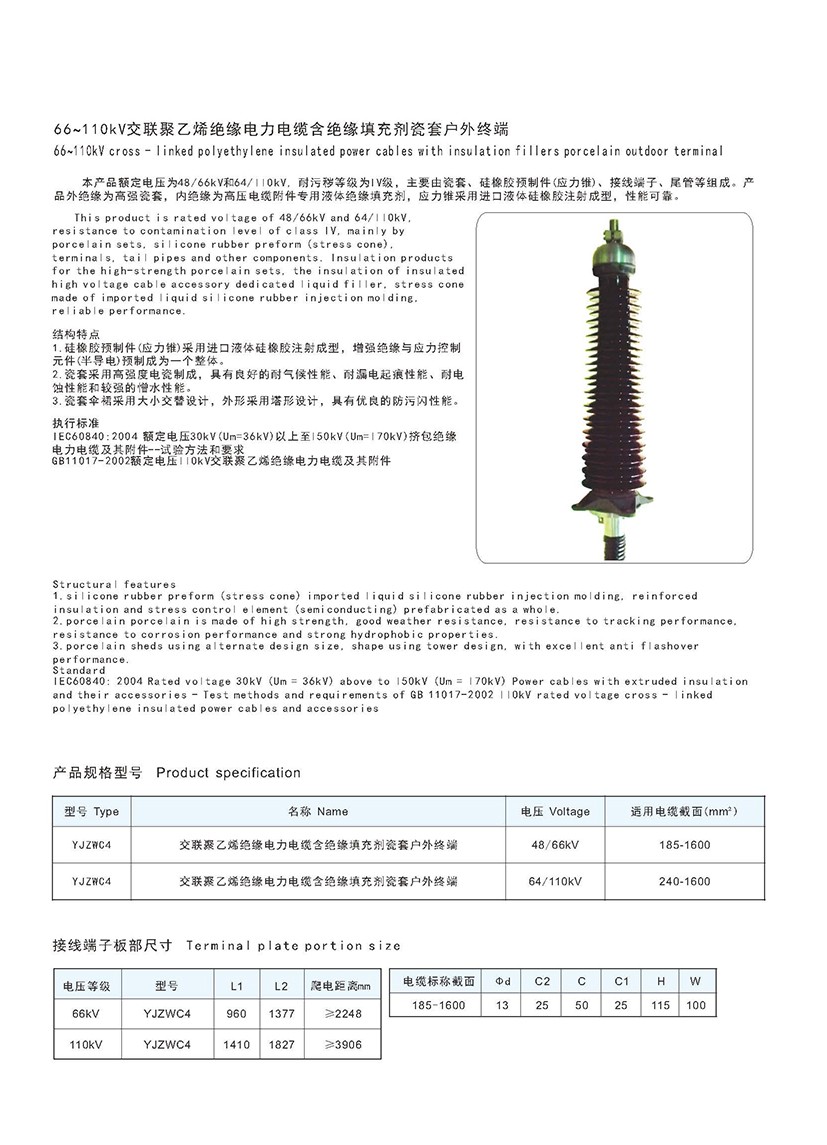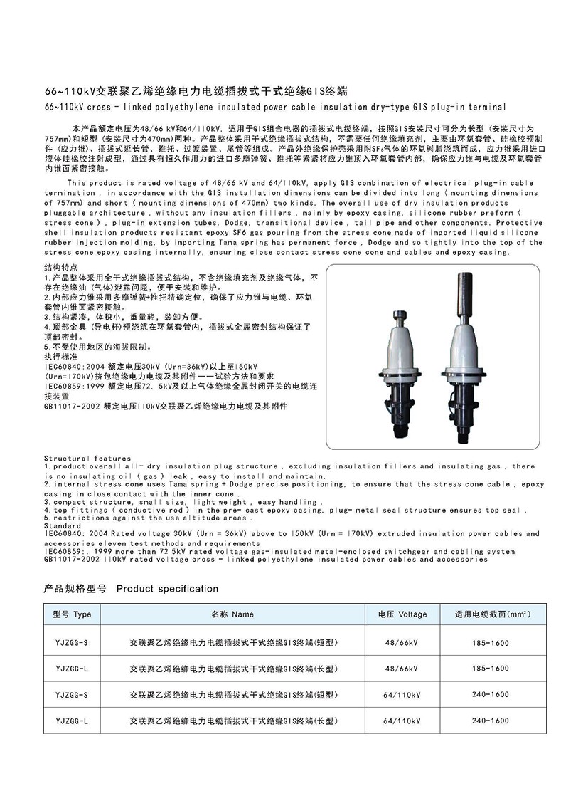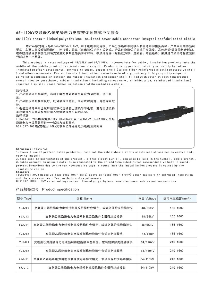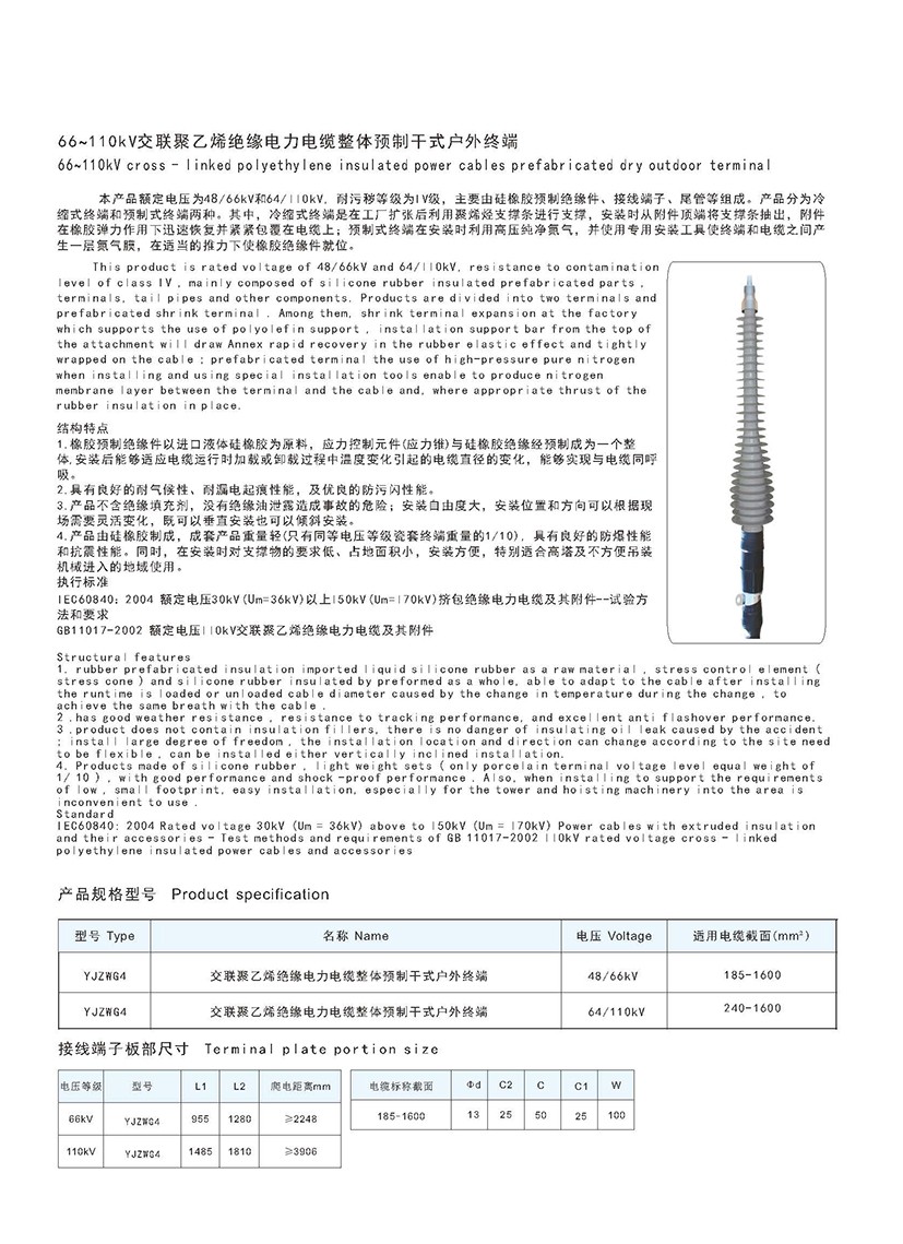 66~110kV交聯聚乙烯絕緣電力電纜附件系列